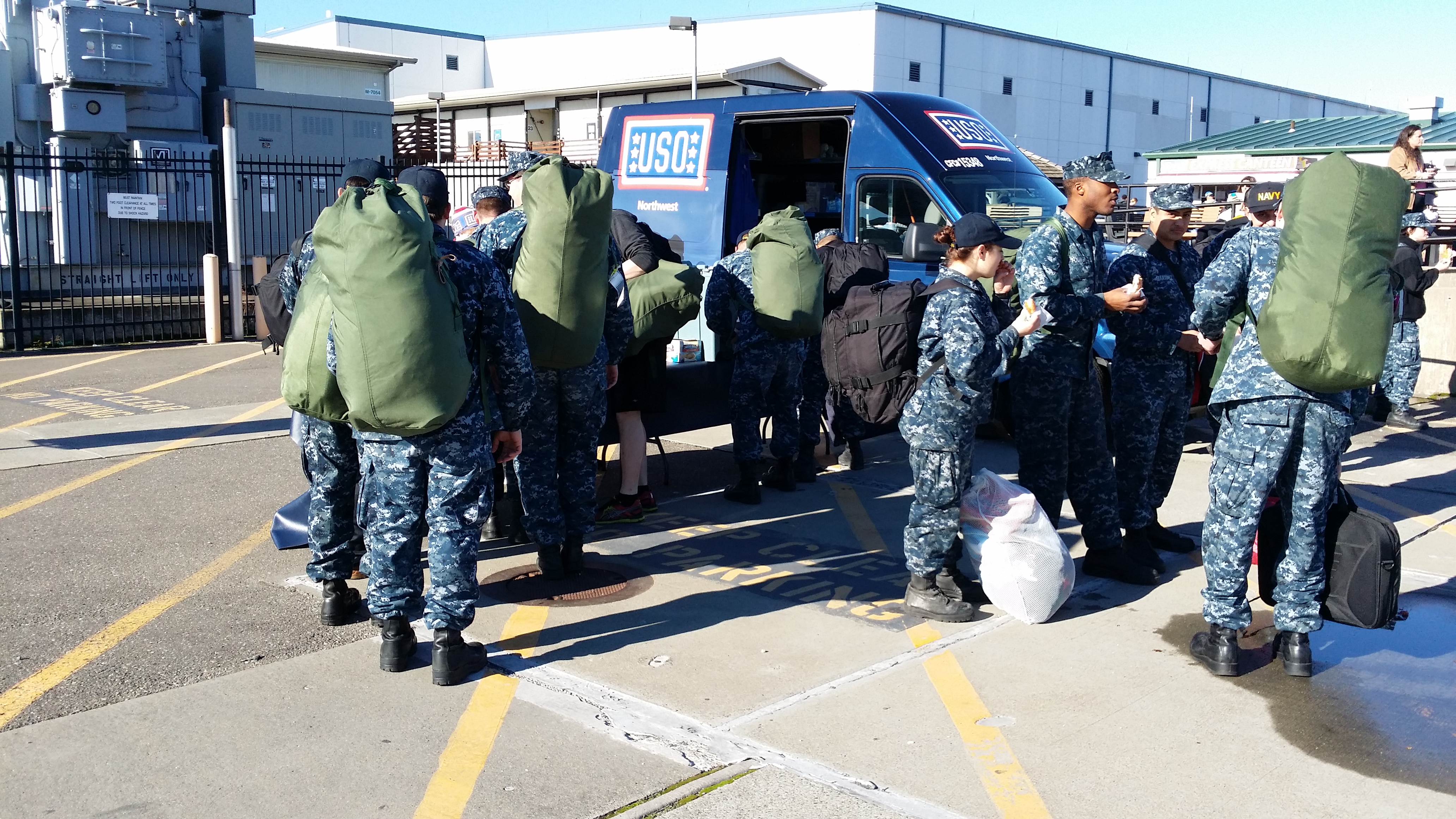 USO believes that support should never be stationary. USO Northwest's Mobile USOs are like a USO center on wheels! Our two Mobile USOs expand our service delivery by offering our military and their families the same first-class service and programs we provide at our stationary centers, but in the field during trainings, pierside for deployments and homecomings, and throughout military locations in our geographic service area. Whether it's an aircraft carrier returning from the Persian Gulf, a Coast Guard icebreaker departing to the Arctic, or troops in Yakima in need of some barbeque, our Mobile USO will be there to offer our legendary USO hospitality.